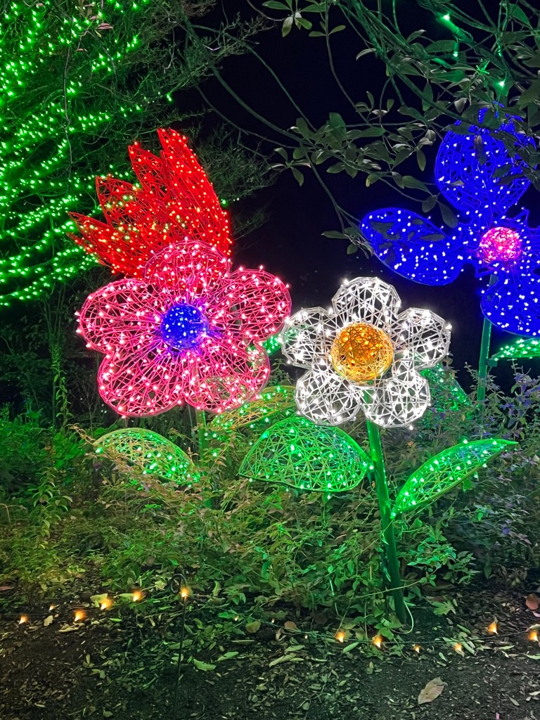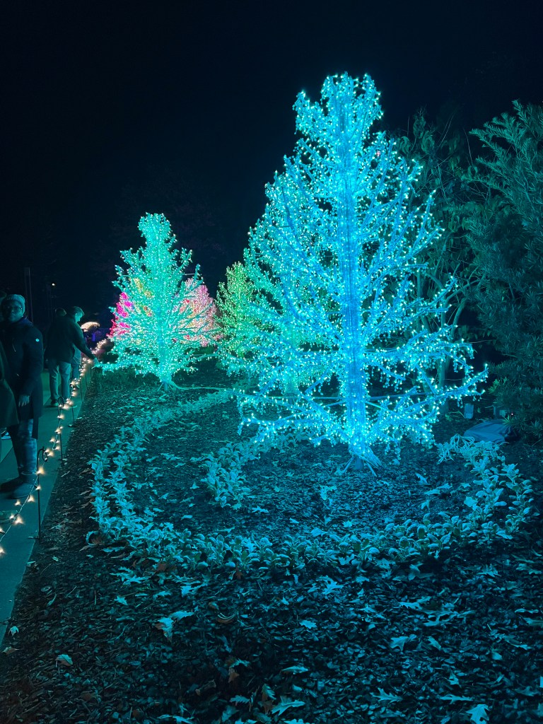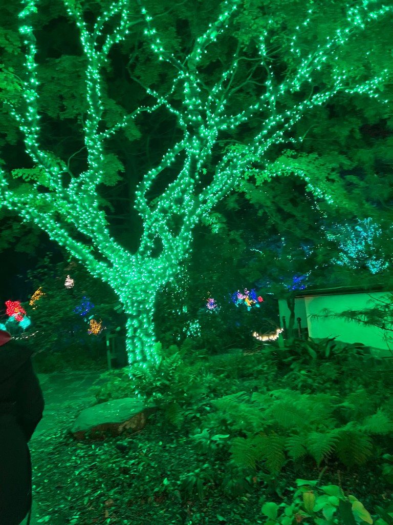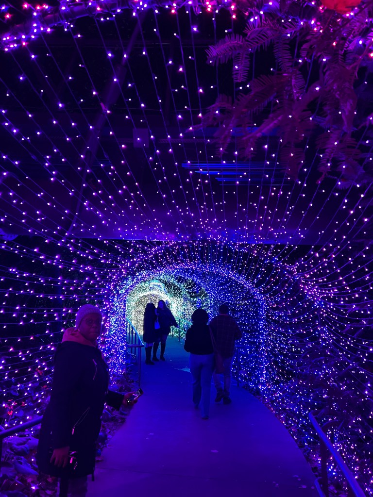 This activity was one that I got to do with my family. We got to experience the Garden Lights for the first time. It made the experience even more fun. First, I want to thank the couple that gave us the drink tickets they didn’t use when we walked in. 😜 From the moment we walked in, there were lights everywhere. Trees, bushes, buildings. I have to admit that Christmas lights are one of my favorite parts of the holidays. Seeing them and the different effects made the child in me so happy.