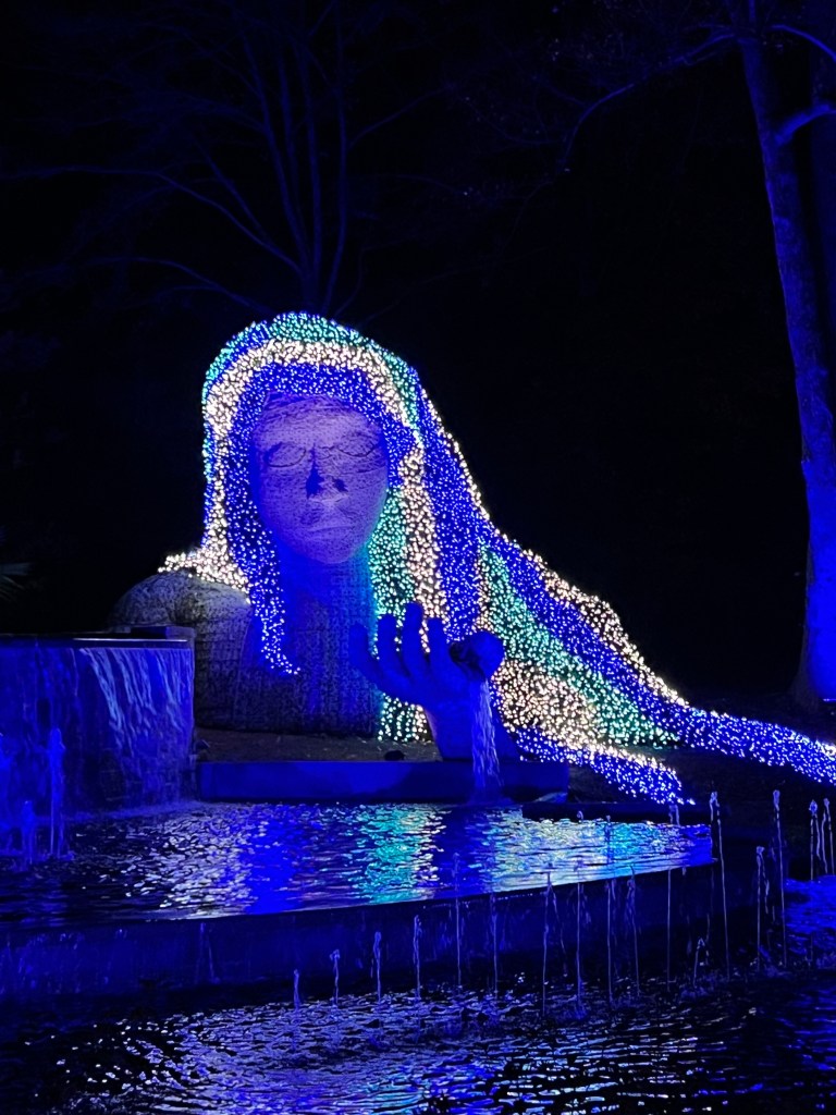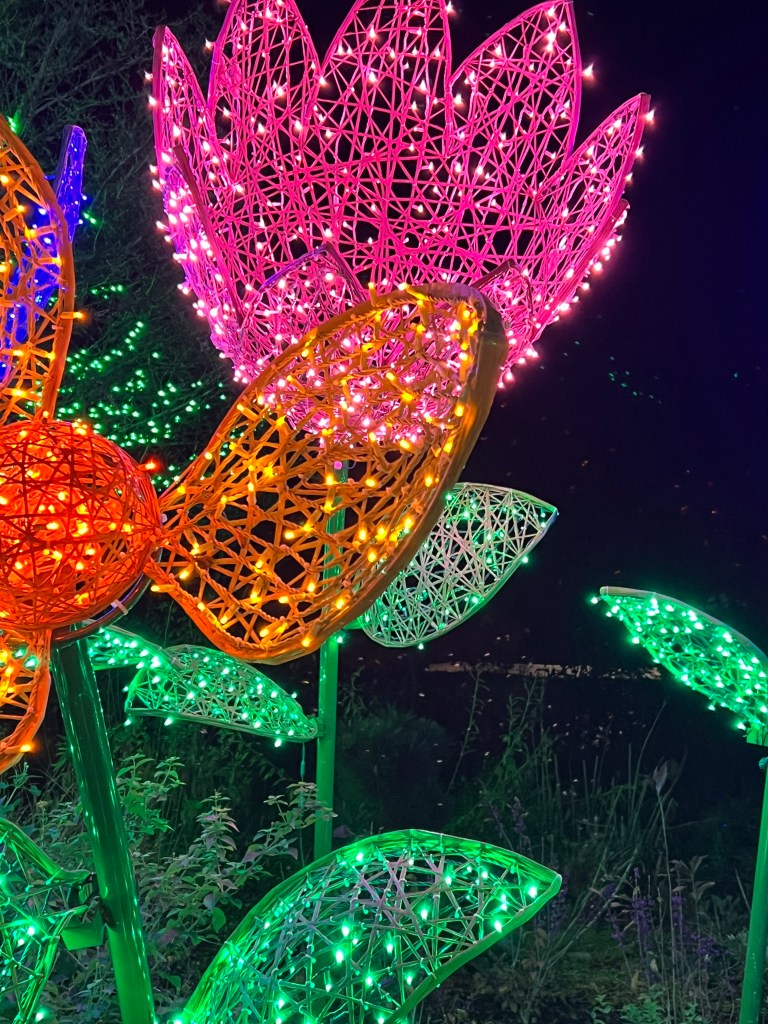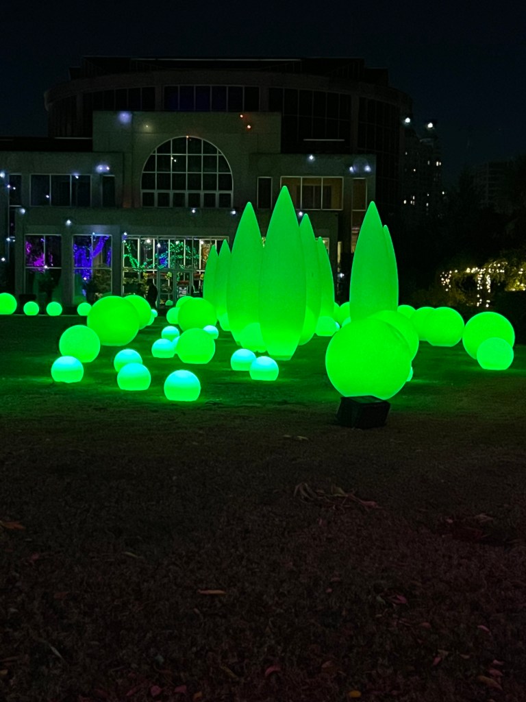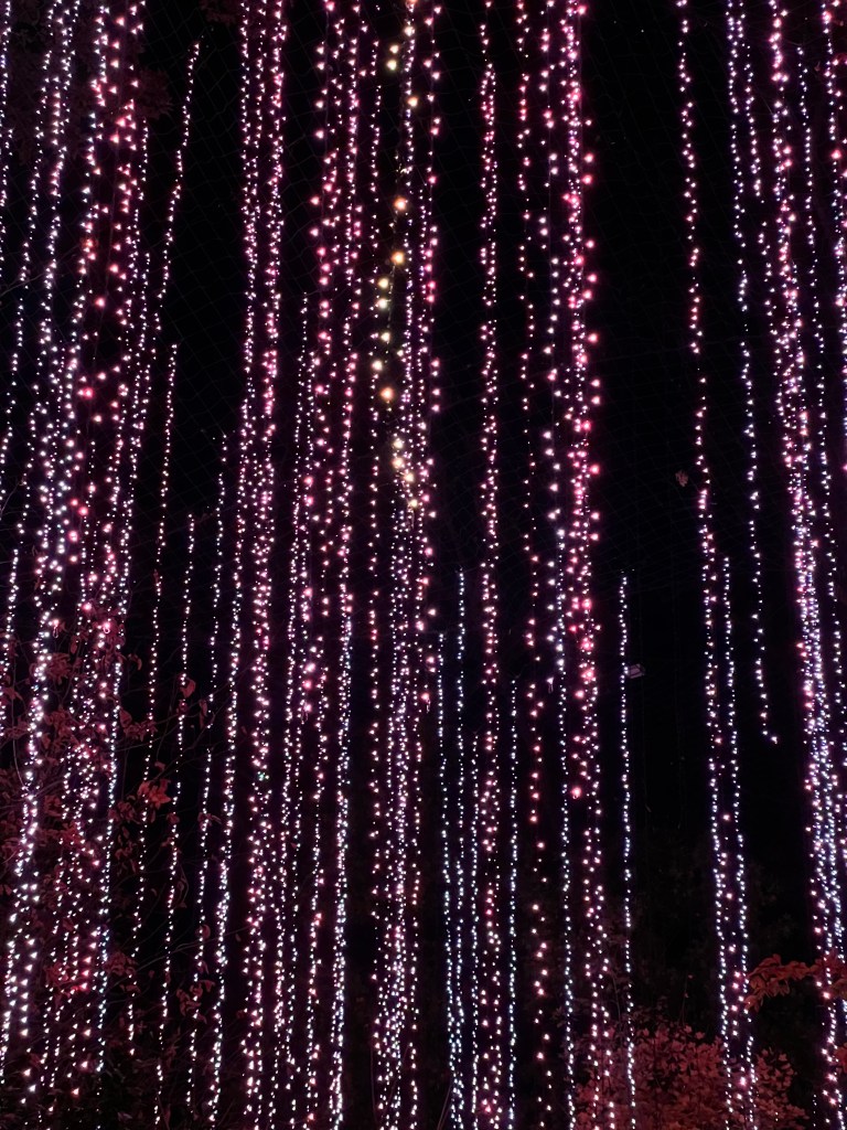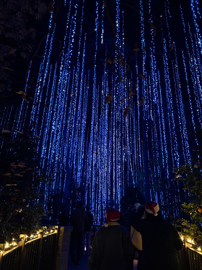 This activity was one that I got to do with my family. We got to experience the Garden Lights for the first time. It made the experience even more fun. First, I want to thank the couple that gave us the drink tickets they didn’t use when we walked in. 😜 From the moment we walked in, there were lights everywhere. Trees, bushes, buildings. I have to admit that Christmas lights are one of my favorite parts of the holidays. Seeing them and the different effects made the child in me so happy.