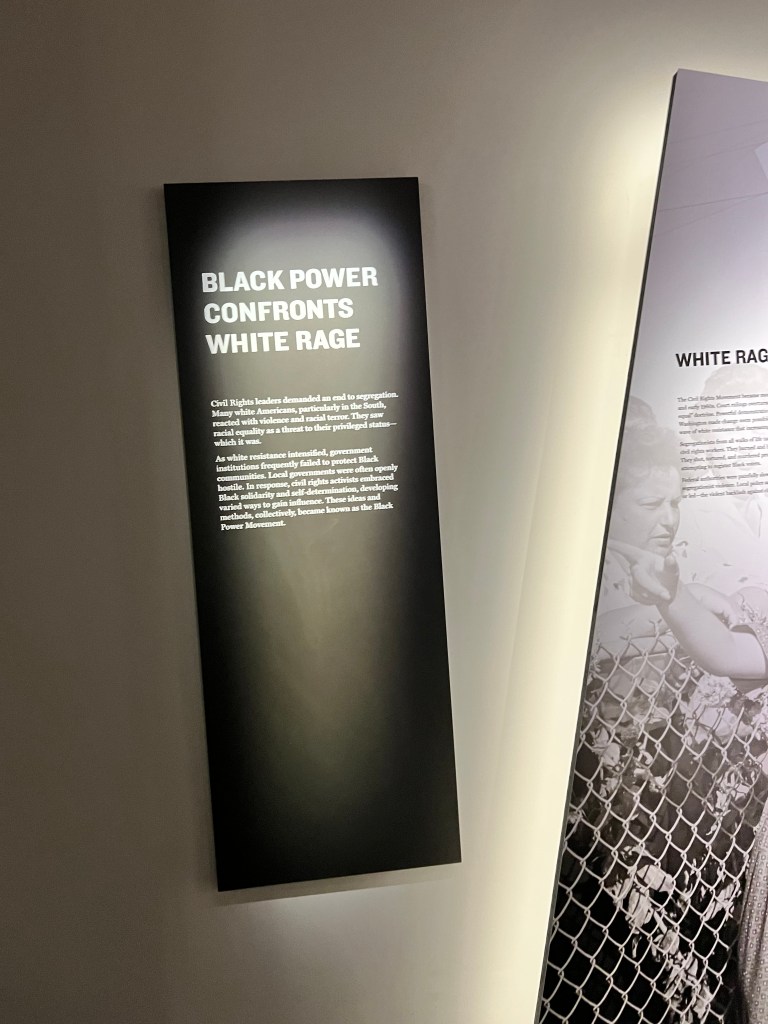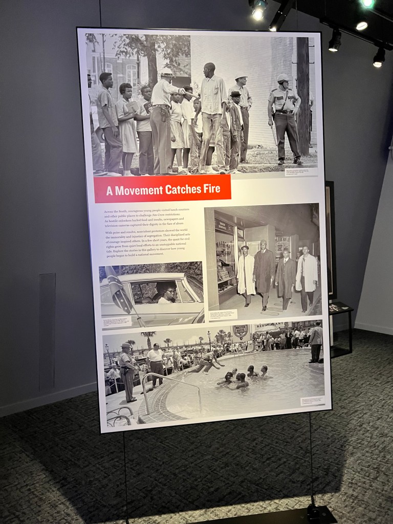 These exhibits remind me that a lot of what we know as the Civil Rights era is not that old. One of the exhibits in the museum features a list of the Jim Crow laws that were in effect in the United States. Jim Crow laws were active from the 1870s to the mid-1960s. They are laws that were enacted to encourage segregation, while stripping minorities of their rights. Some of these laws are crazy to imagine happening now. For instance, one of the laws regarding education states that a separate school shall be maintained for children of the white and colored races. Public school funds shall be restricted to schools that are defined as racially segregated, which is why Brown versus Board of Education is an essential landmark in the United States today. Jim Crow even had laws and rules for personal relationships. The law states it shall here and forth be unlawful for any white person to marry save a white person or a person with no other admixture of blood, then white and American Indian (Center for Civil and Human Rights).
