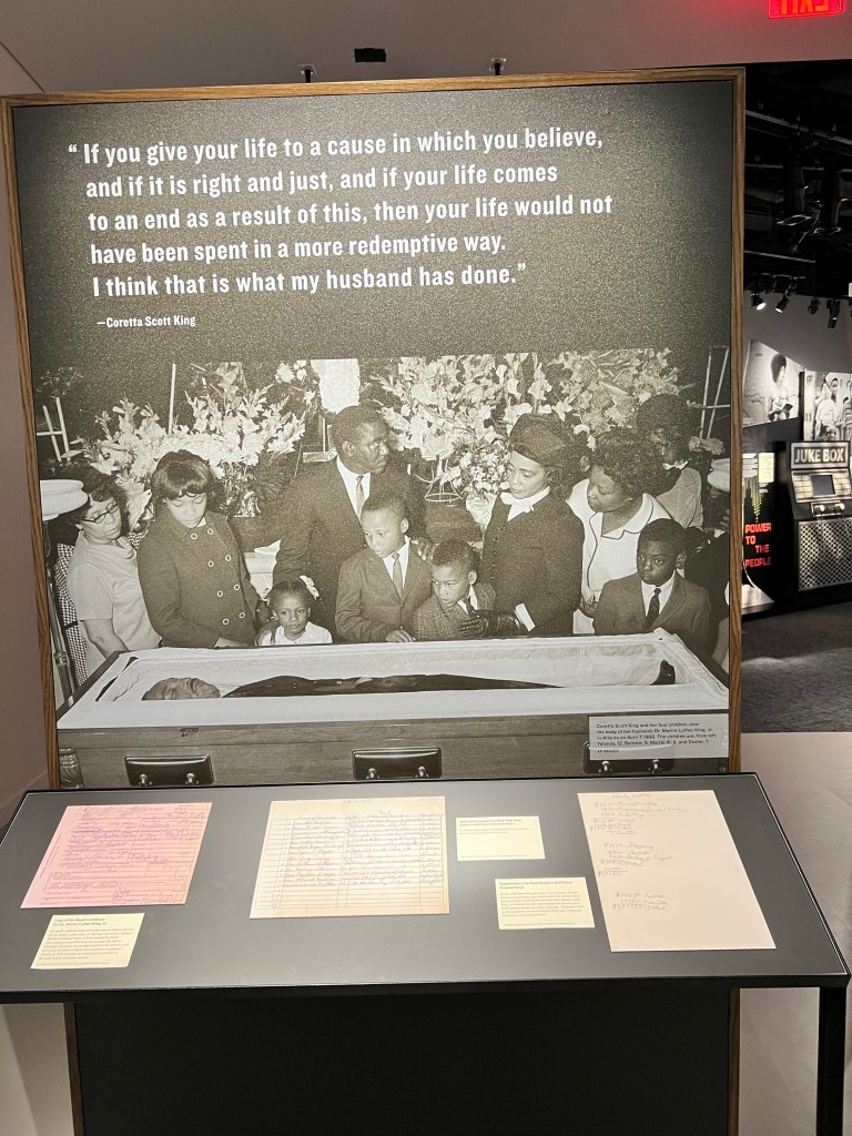 The museum has a display where you can sit at a lunch counter. It is designed to resemble the counters where the lunch counter protest took place. Lunch counter sit-ins took place from the 1940s to the 1960s. The lunch counter exhibit features audio and seats that move, as though there are people behind you kicking the seats and pushing you. It sounds like you’re literally there. This puts into perspective what the protesters went through so that we can be treated as equals. All that the student protesters were asking for was to sit at a lunch counter and be served. The ability to do that is something that I feel is often overlooked. The lunch counter is a rough exhibit, but it is also something I think that everybody should try at least once.