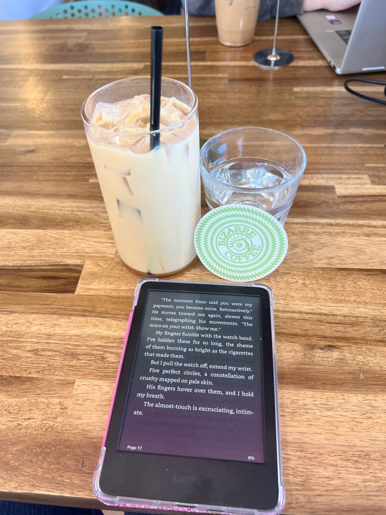 I love trying new places, especially new local places. My friend Michelle recently invited me to a new coffee shop that opened in the Roswell area. Of course, I said yes! If there is anything about me that you must know, know this: I love coffee. Since it was only a ten-minute drive from my home, I was definitely willing to go. The coffeeshop we went to is called Bizarre Coffee. I knew when I got there that it would be my type of place. In front of the building, the first thing I see is a purple door. I knew then that this would be my kind of place. From their website, I learn that it is a 100-year-old building. It has two levels, with seating on the second floor.